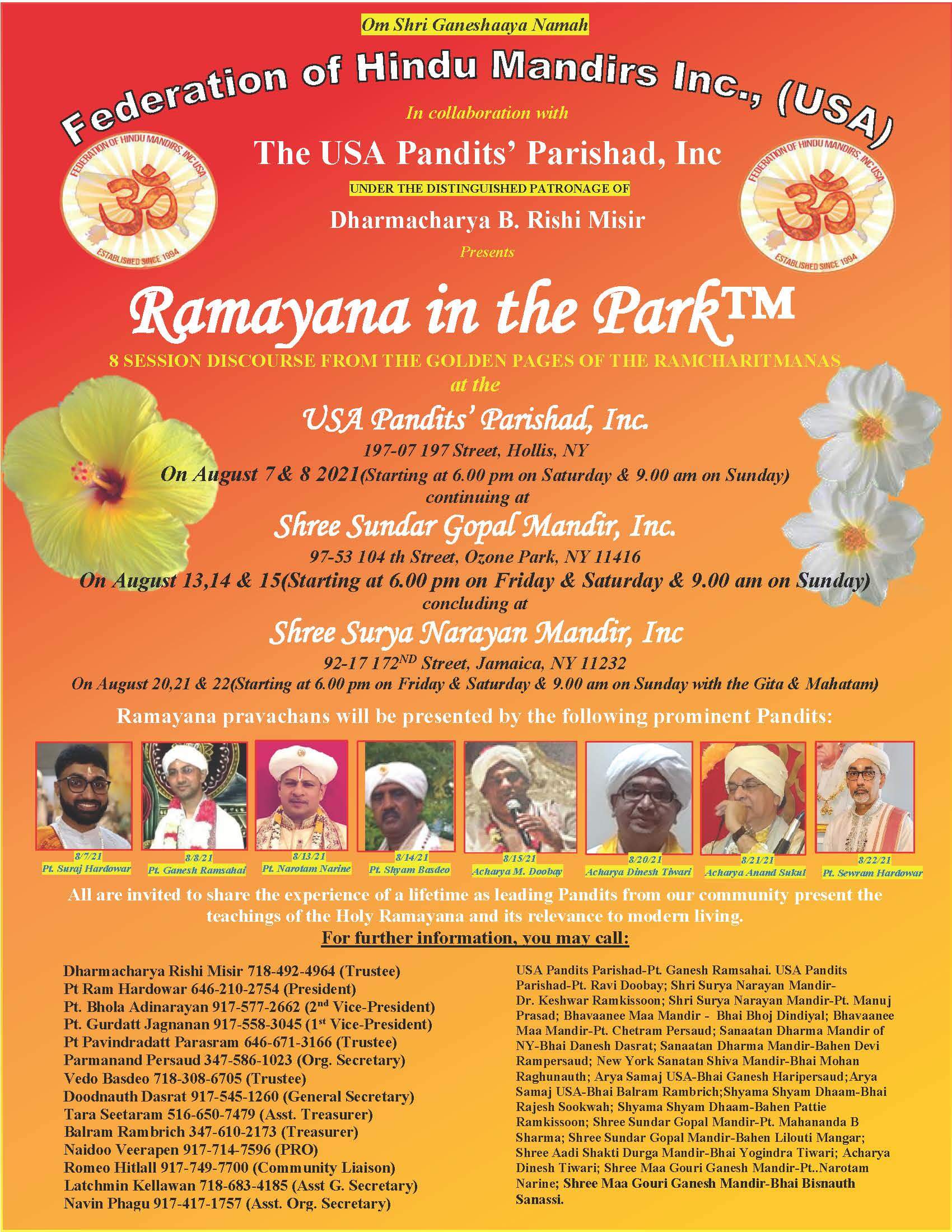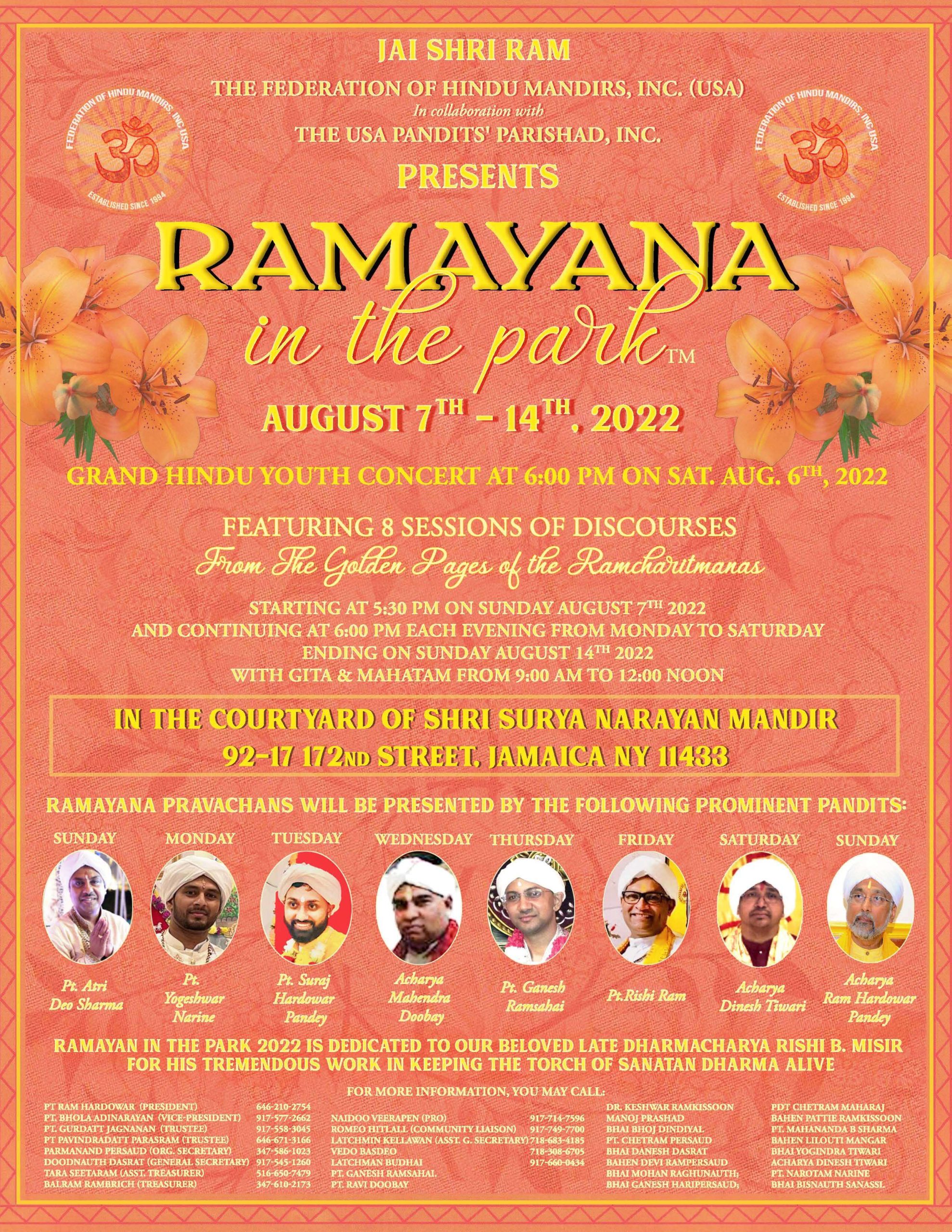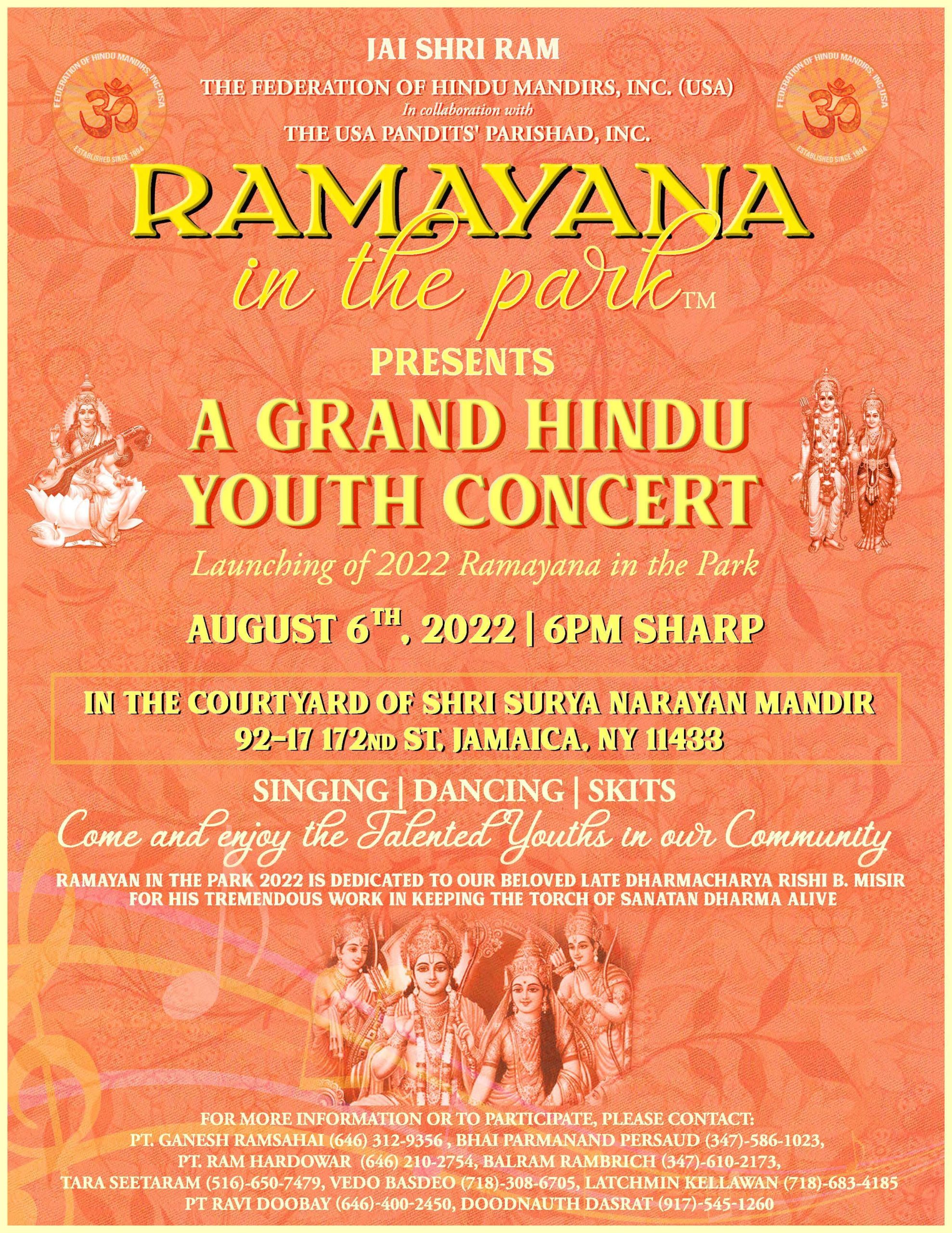 An annual Summer week long event with teachings from one of Hindus most revered text, The Ramayana.